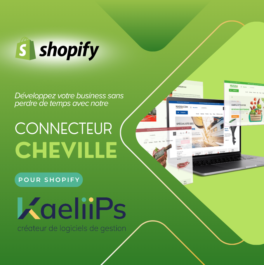 Simplifiez la gestion de votre activité e-commerce dans le secteur de la viande avec le Connecteur Cheville pour Shopify. Développé pour répondre aux besoins spécifiques des grossistes en viande, ateliers de découpe et négociants, ce connecteur relie votre site Shopify au logiciel Cheville de Kaeliips pour une gestion fluide et performante.